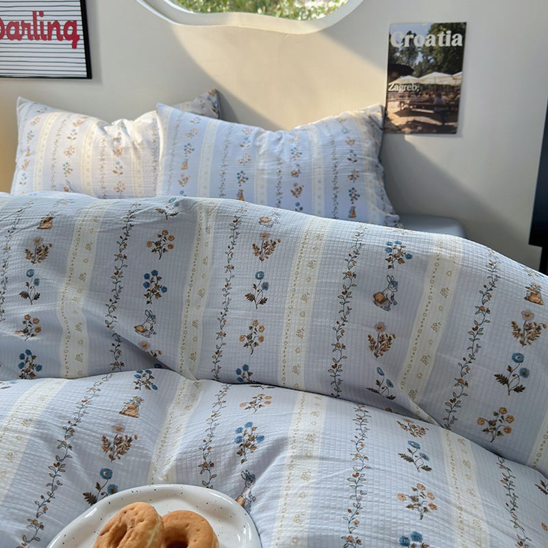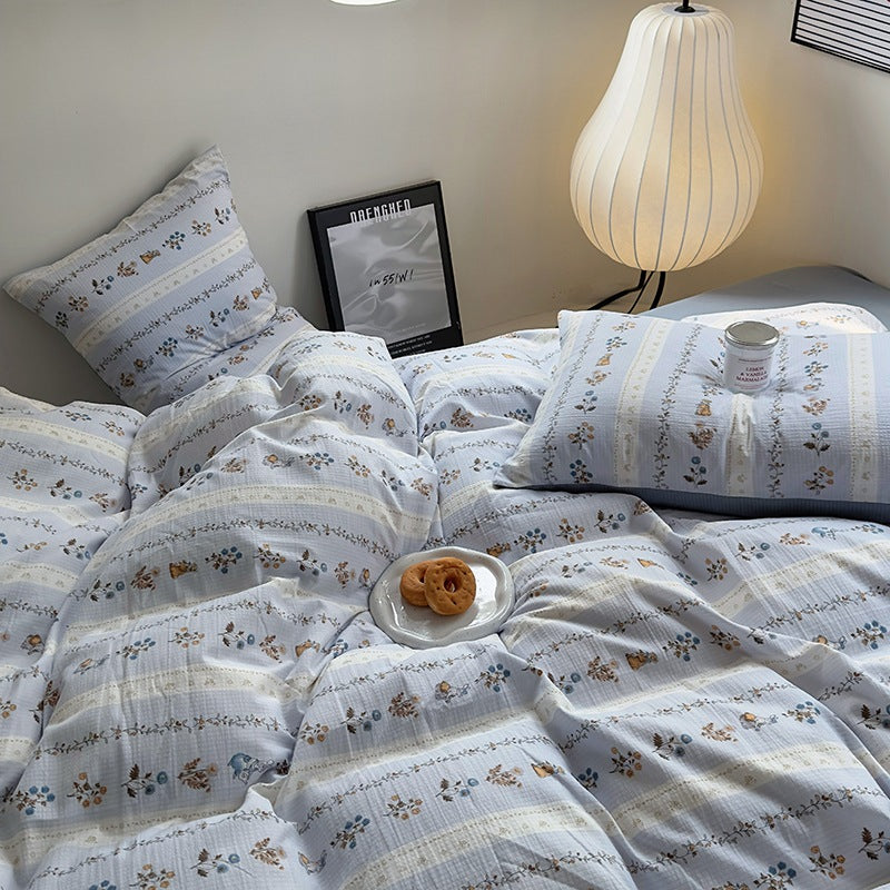 Parure de lit quatre pièces en coton lavé